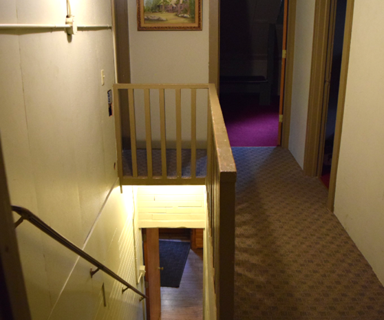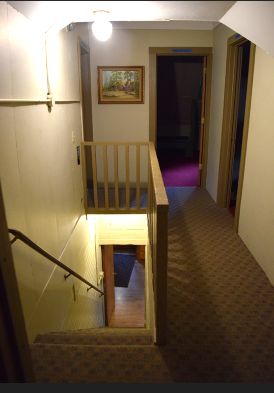 Recently updated, bathrooms are located off the main room downstairs. Men’s bathroom has one toilet, one urinal, two sinks, and one shower.