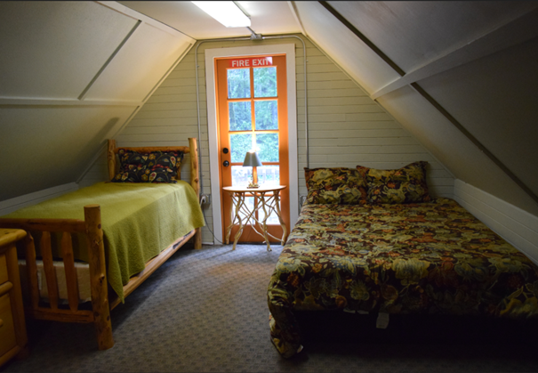 The sleeping quarters are located upstairs and consist of two bedrooms and two dormitory/bunk rooms.